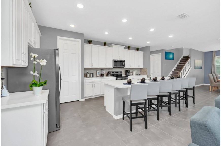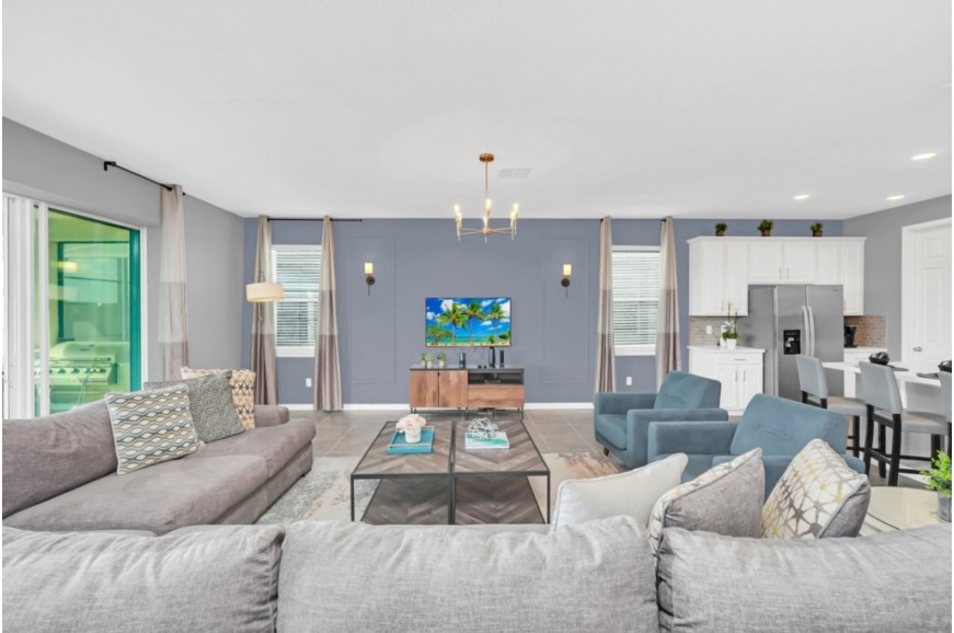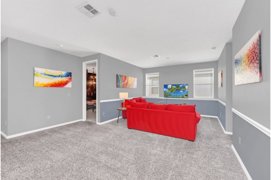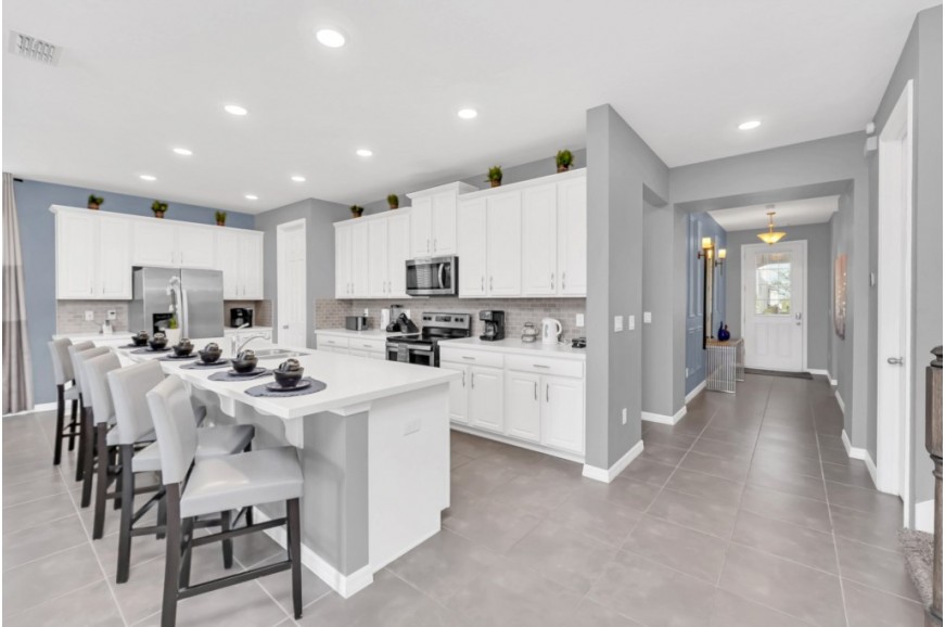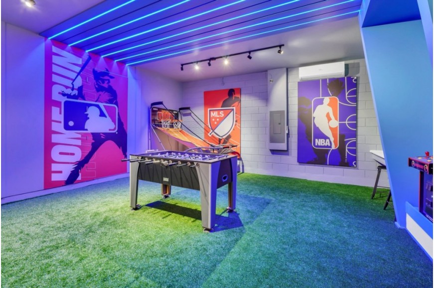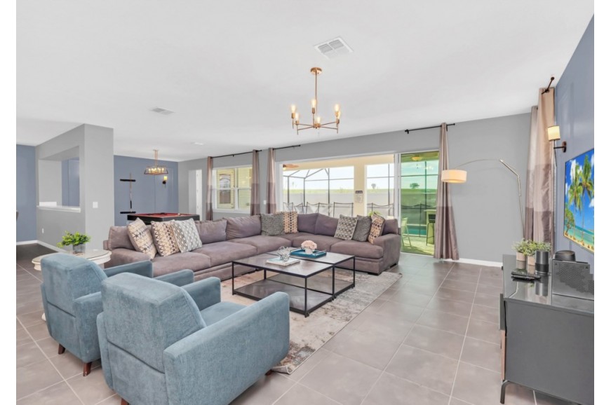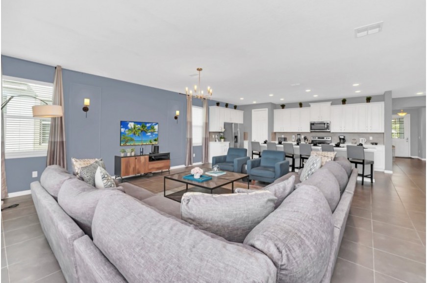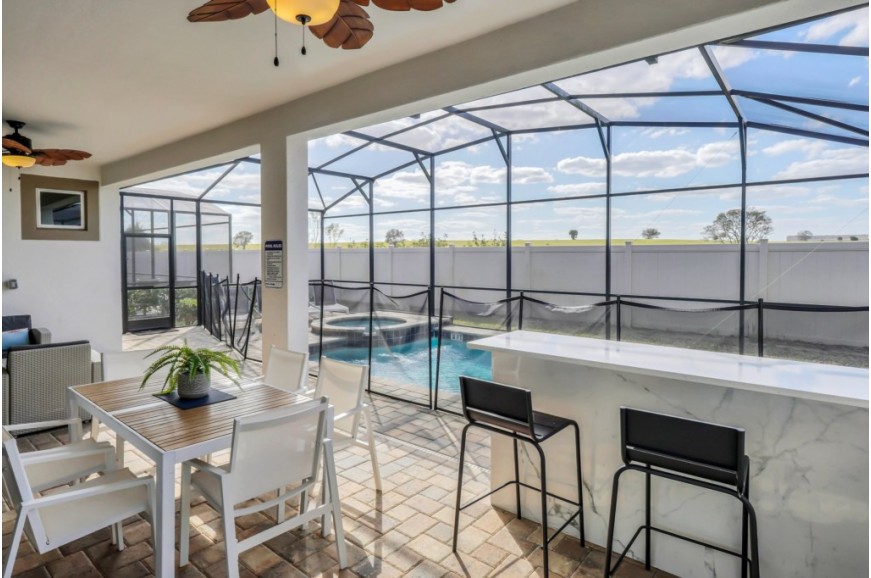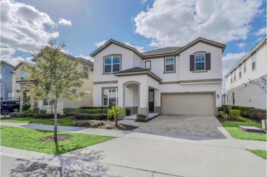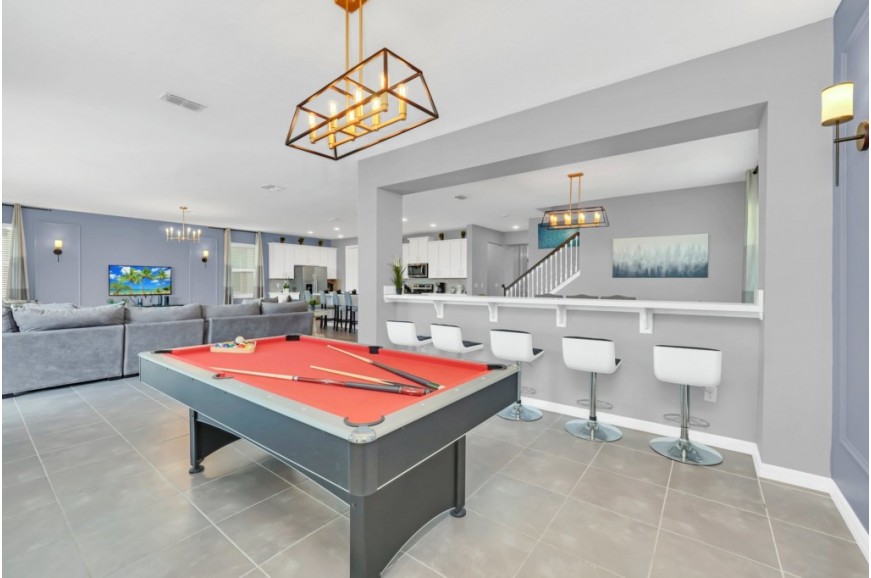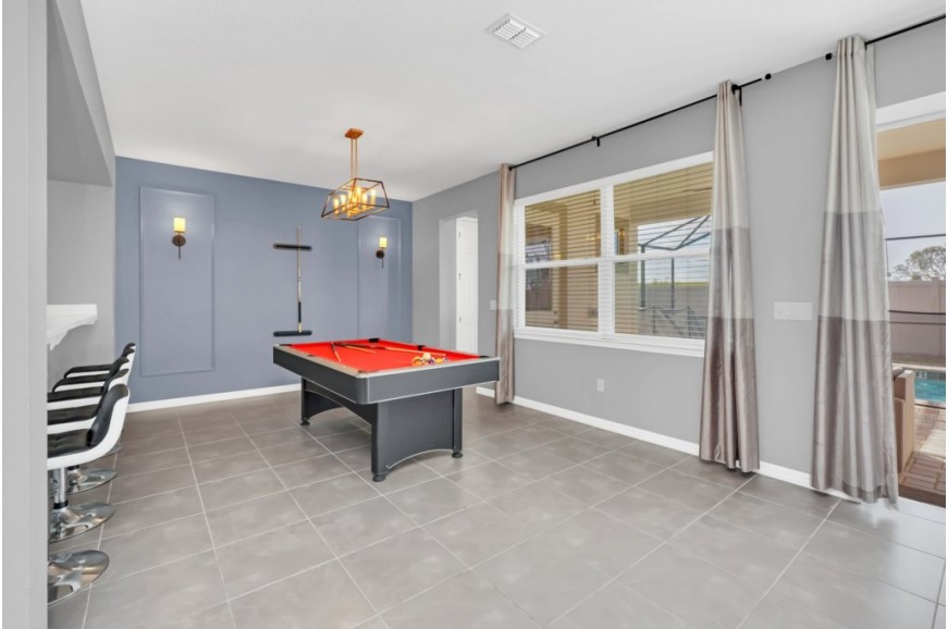 Solara Resort - Kissimmee, Florida is an upscale community currently under development just 7 miles from Walt Disney World. This gated resort community sits nestled just outside of Orlando, Florida. During your stay, you will enjoy this well-appointed home that has been designed and decorated to provide you and your family an abundance of luxury amenities and leaves you well equipped to vacation with all the usual items you would expect to find at home. The resort is only a 30-minute drive from the Orlando International Airport and is situated central to all of Orlando’s famous attractions. The resort boasts an expansive clubhouse which includes a grand pool, complete with surfing simulator, cabanas, pool bar, children's playground, sand volleyball court, basketball court, and soccer field. Inside the clubhouse sits the lounge, bar & grill, fitness center, business center, and sundries store. This spacious 9 bedroom holiday villa can comfortably accommodate a larger family or group of up to 18 people.