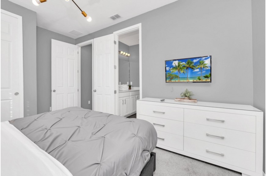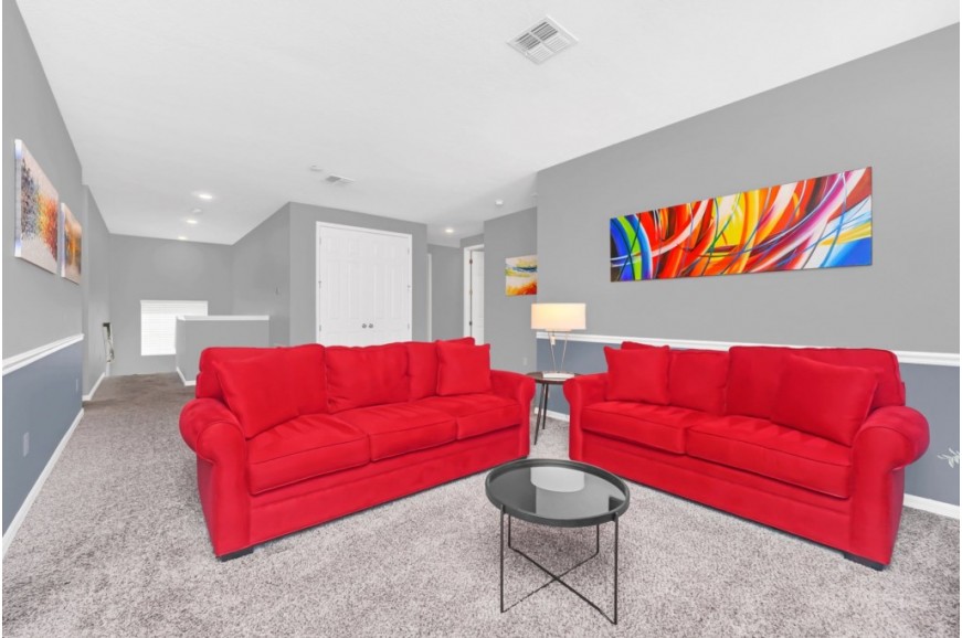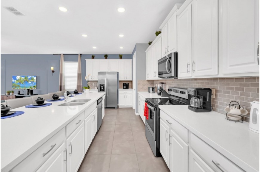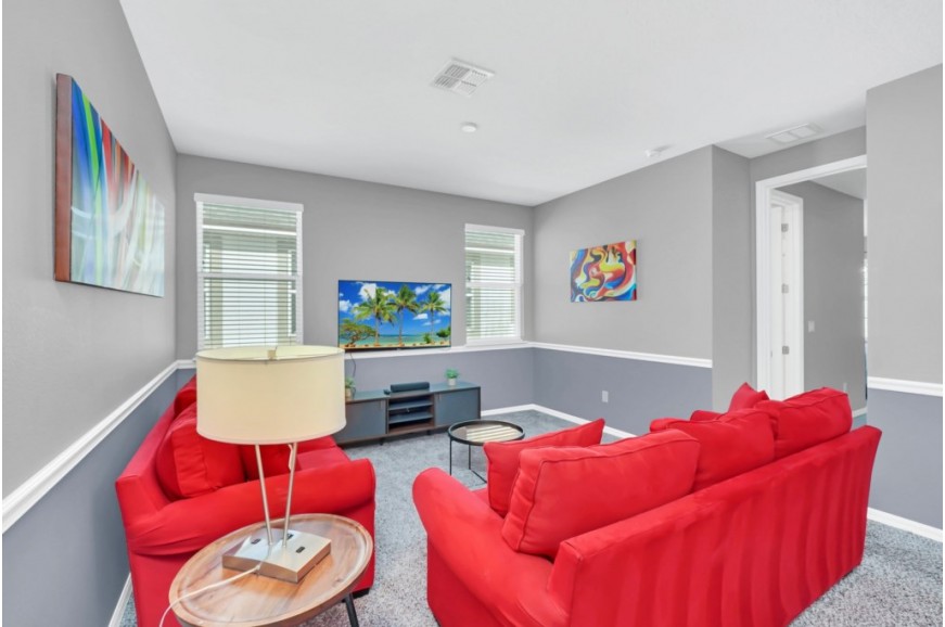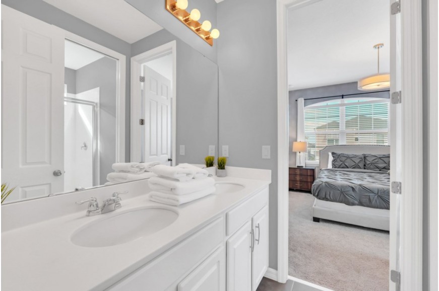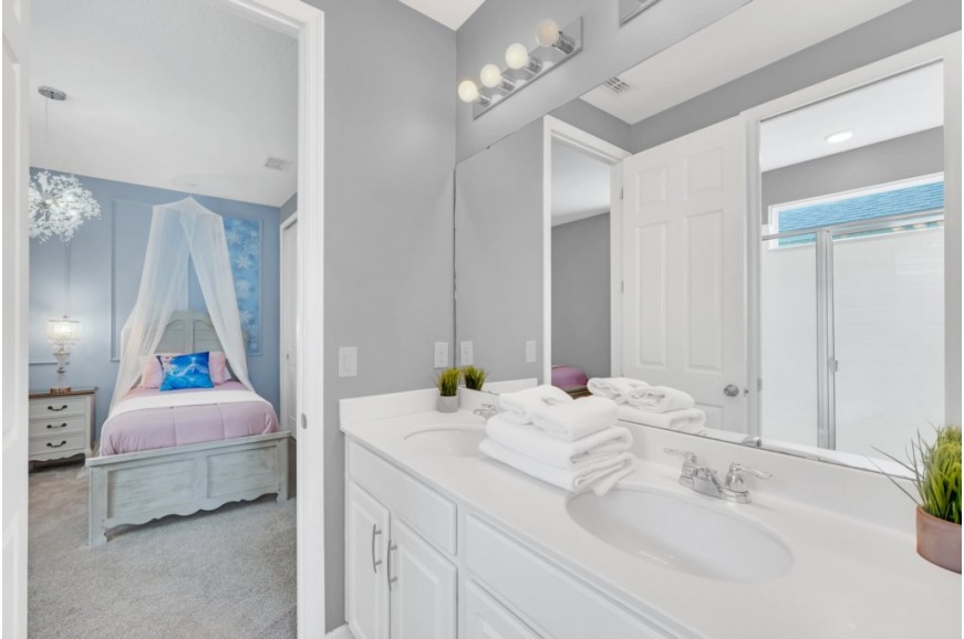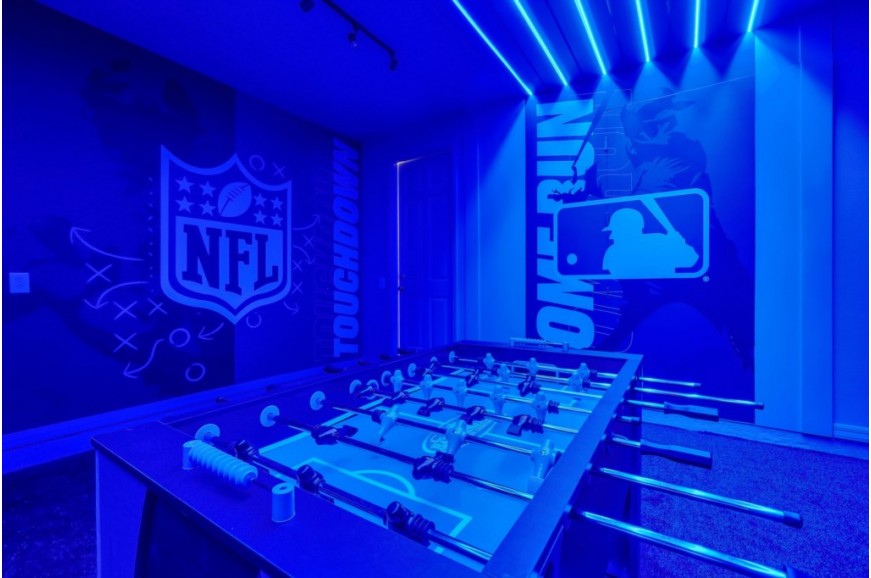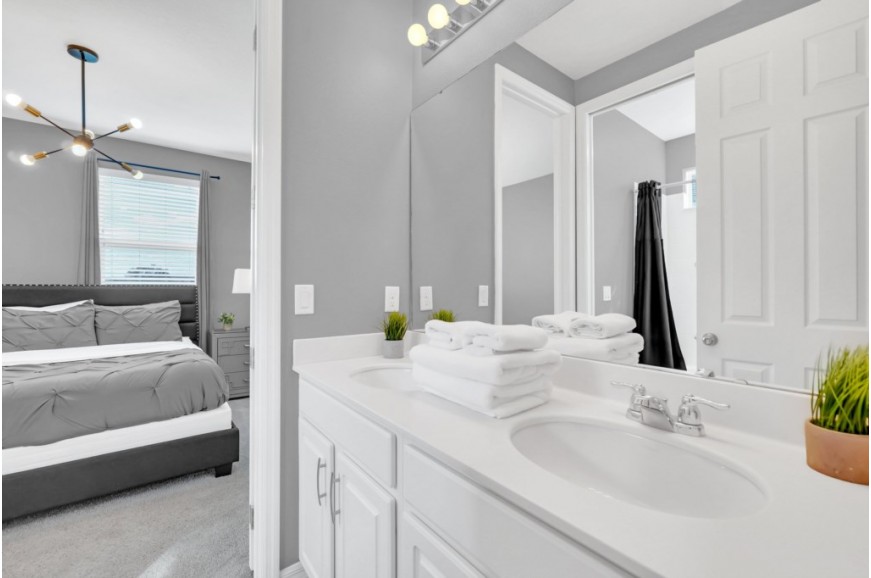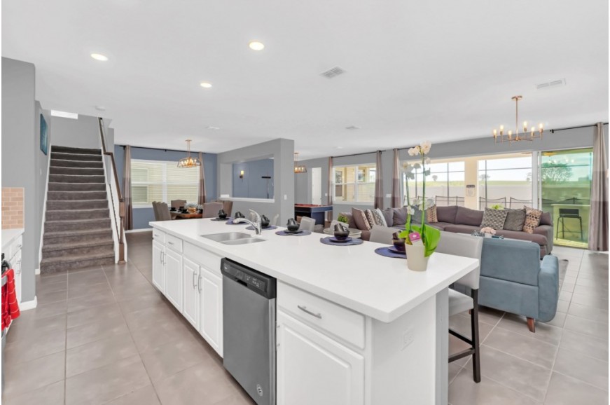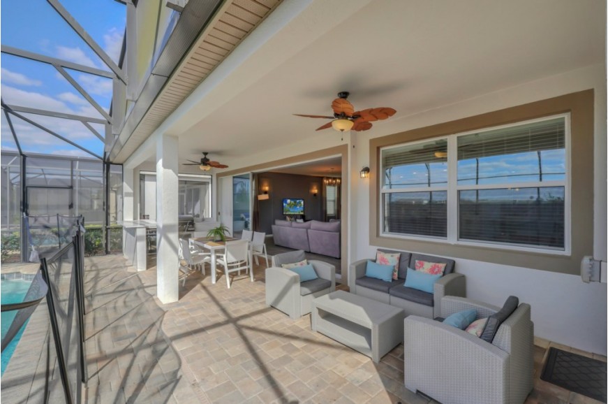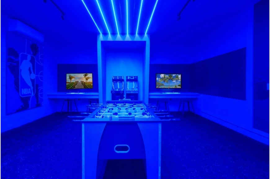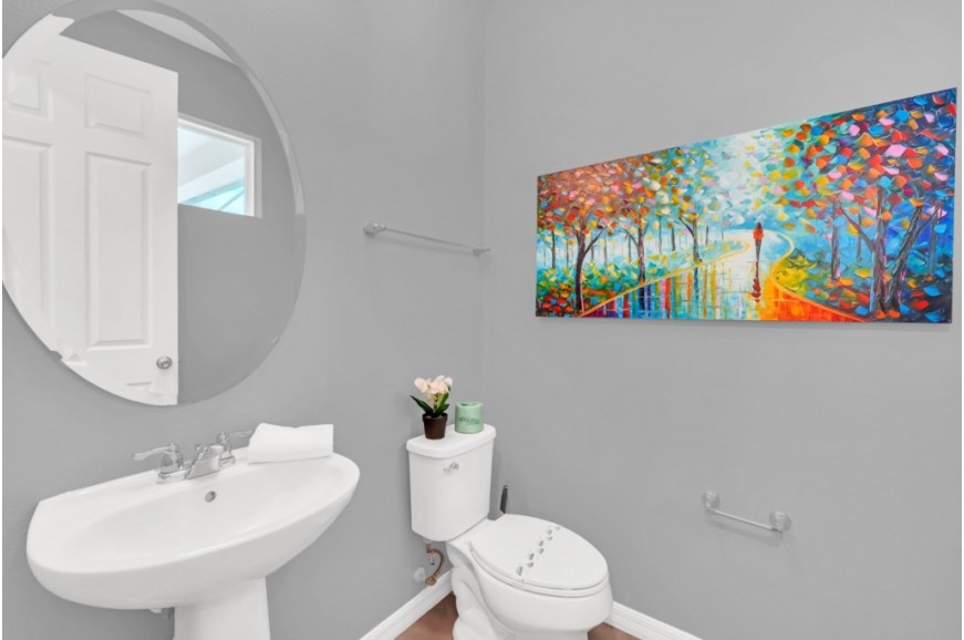 Solara Resort - Kissimmee, Florida is an upscale community currently under development just 7 miles from Walt Disney World. This gated resort community sits nestled just outside of Orlando, Florida. During your stay, you will enjoy this well-appointed home that has been designed and decorated to provide you and your family an abundance of luxury amenities and leaves you well equipped to vacation with all the usual items you would expect to find at home. The resort is only a 30-minute drive from the Orlando International Airport and is situated central to all of Orlando’s famous attractions. The resort boasts an expansive clubhouse which includes a grand pool, complete with surfing simulator, cabanas, pool bar, children's playground, sand volleyball court, basketball court, and soccer field. Inside the clubhouse sits the lounge, bar & grill, fitness center, business center, and sundries store. This spacious 9 bedroom holiday villa can comfortably accommodate a larger family or group of up to 18 people.