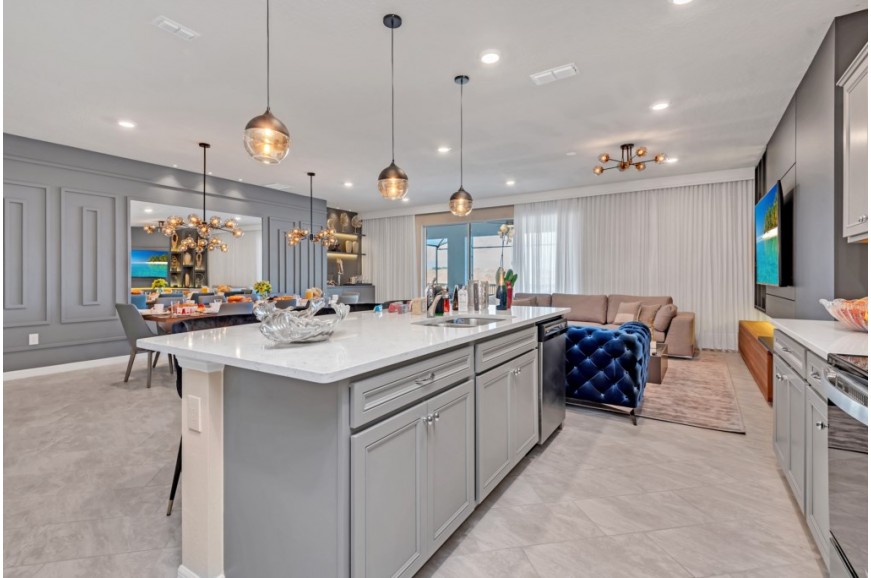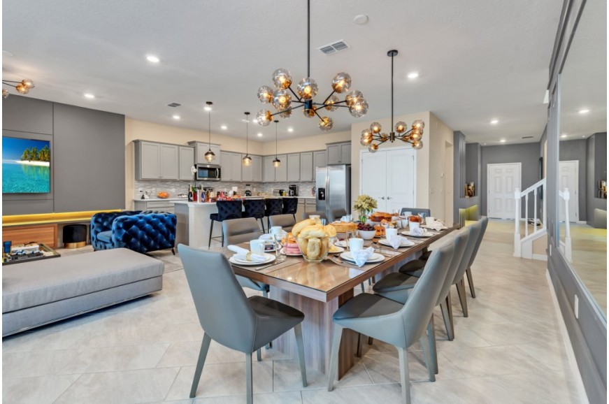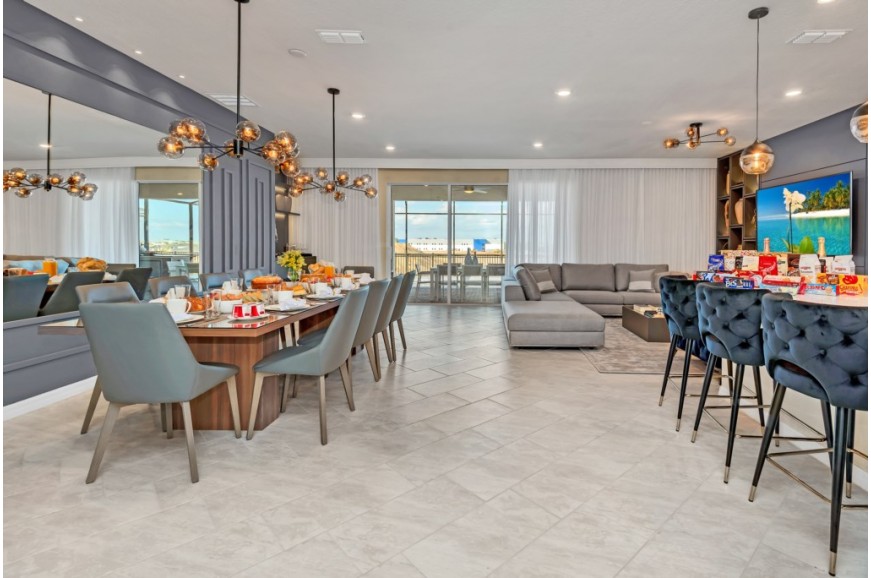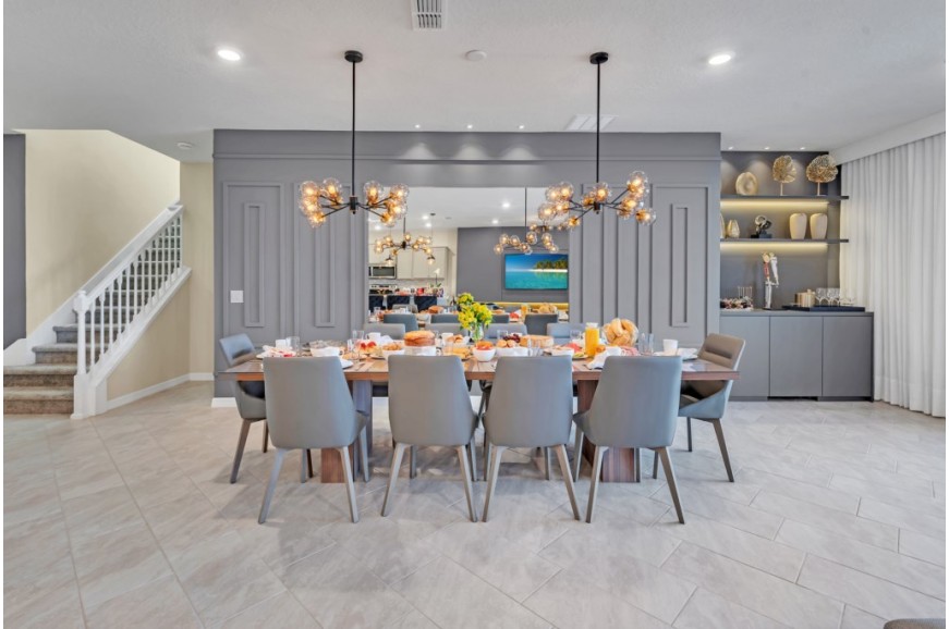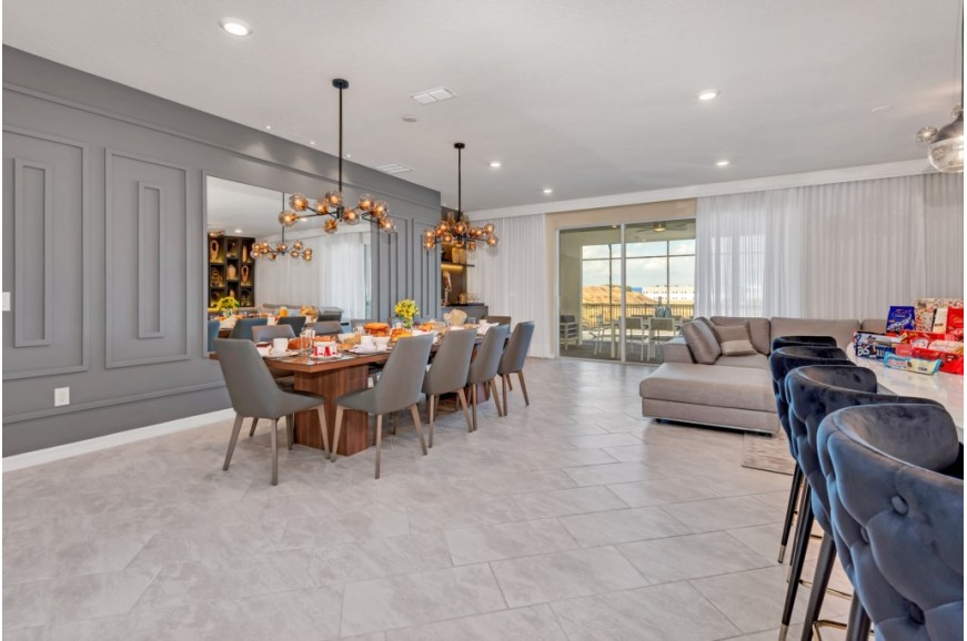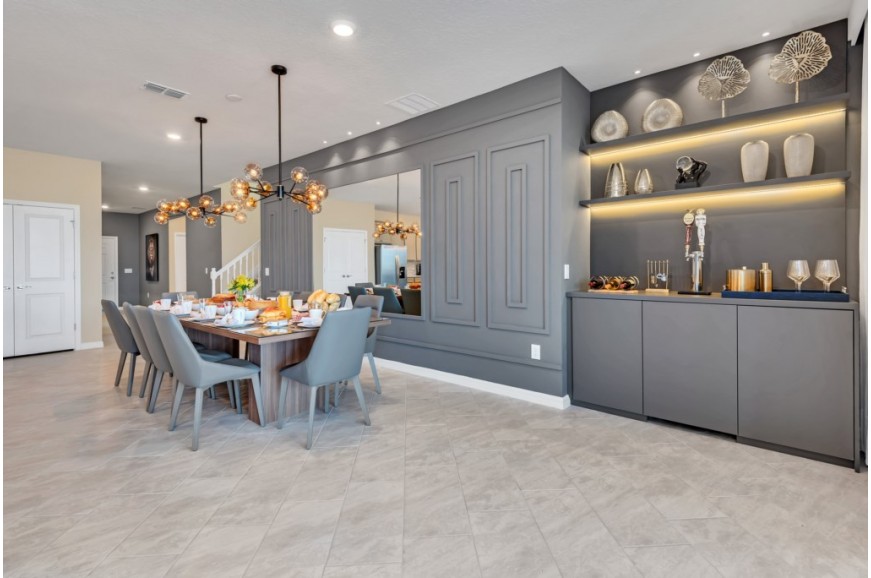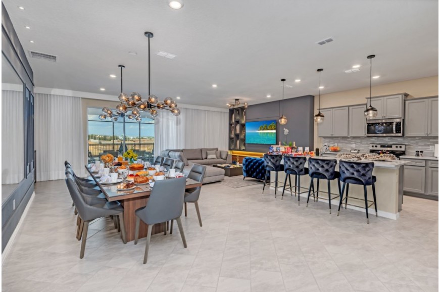 Windsor Island - Davenport, Florida is an upscale gated community located just 20-25 minutes from Walt Disney World. This luxury home sits nestled just outside of Orlando, Florida, and has quickly become one of the most desired locations in the Orlando area. During your stay, you will enjoy this well-appointed home that has been designed and decorated to provide you and your family an abundance of luxury amenities and leaves you well equipped to vacation with all the usual items you would expect to find at home. Windsor Island is only a 30-minute drive from the Orlando International Airport and is situated central to all of Orlando’s famous attractions. This spacious 10 bedroom holiday villa can comfortably accommodate a larger family or group of up to 20 people.
