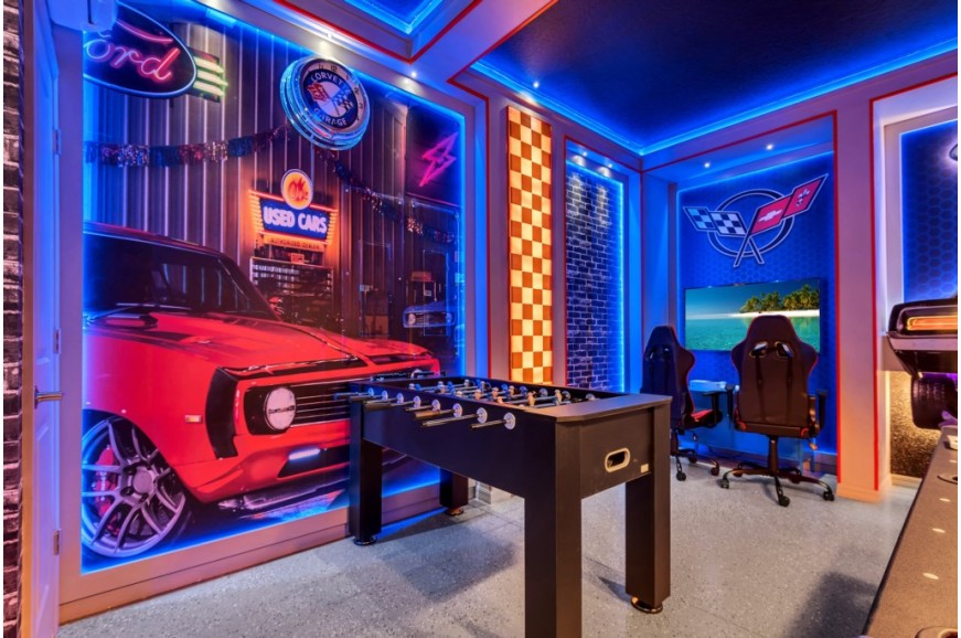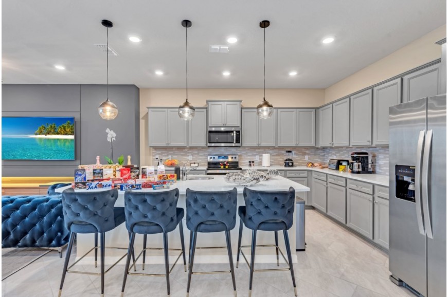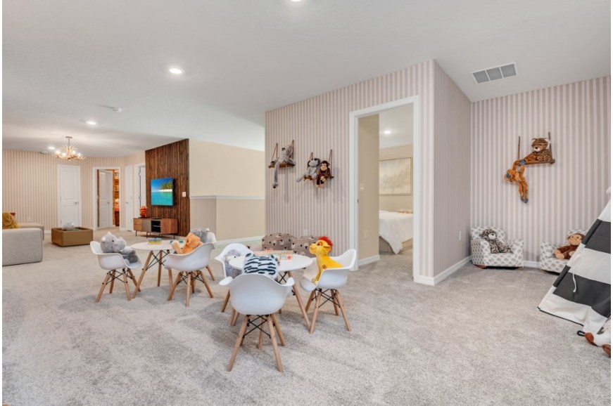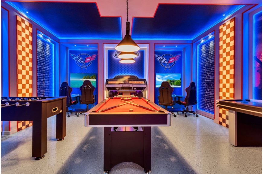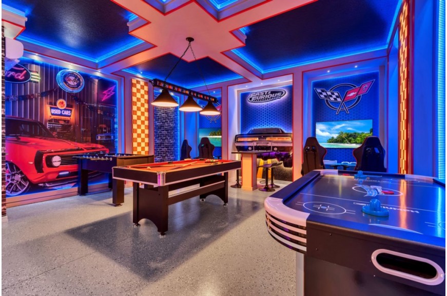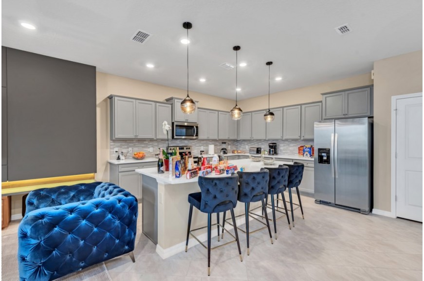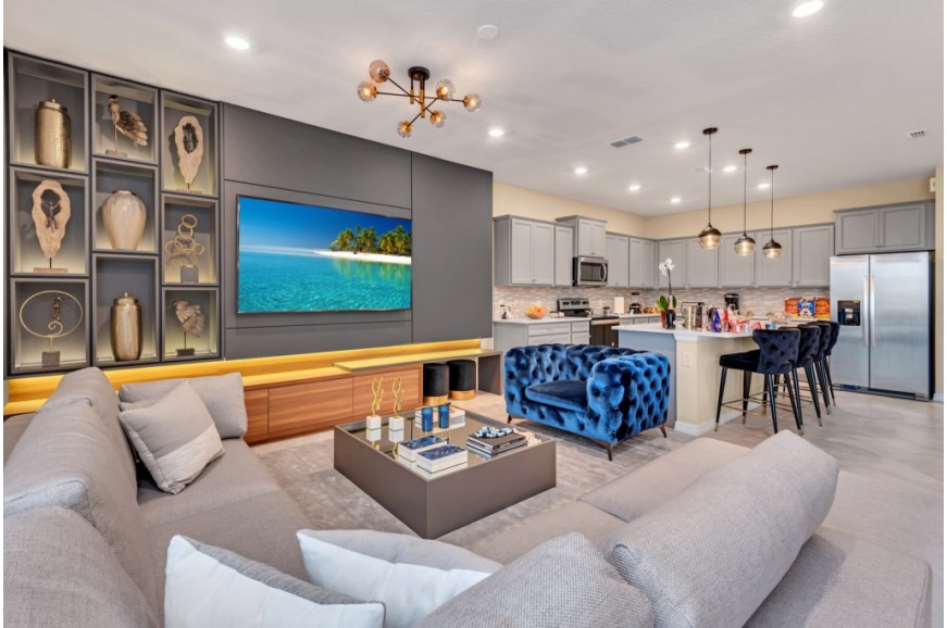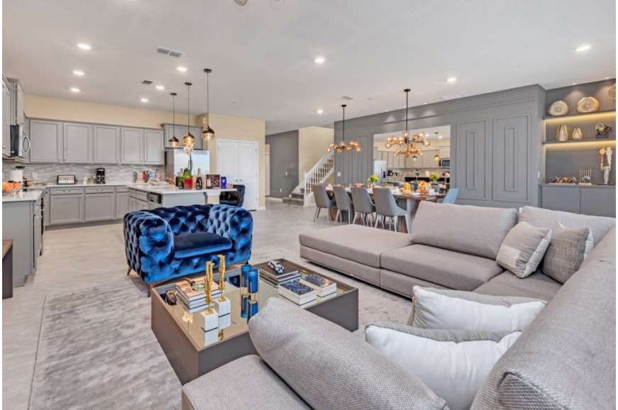 Windsor Island - Davenport, Florida is an upscale gated community located just 20-25 minutes from Walt Disney World. This luxury home sits nestled just outside of Orlando, Florida, and has quickly become one of the most desired locations in the Orlando area. During your stay, you will enjoy this well-appointed home that has been designed and decorated to provide you and your family an abundance of luxury amenities and leaves you well equipped to vacation with all the usual items you would expect to find at home. Windsor Island is only a 30-minute drive from the Orlando International Airport and is situated central to all of Orlando’s famous attractions. This spacious 10 bedroom holiday villa can comfortably accommodate a larger family or group of up to 20 people.