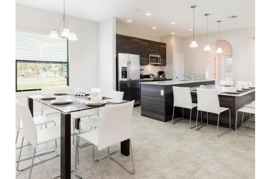 Balmoral Resort – Haines City, Florida is a resort paradise located close to all the Orlando theme parks in beautiful Haines City. The gated community resort offers both access to and a retreat from everything there is to see and do in Central Florida. During your stay you will enjoy this well-appointed home that has been designed and decorated to provide you and your family with an abundance of amenities and leaves you well equipped for a vacation with all the usual items you would expect to find at home. Hit the attractions nearby or stay close to home and enjoy resort-style amenities that include a clubhouse, arcade, fitness center, zero-entry swimming pool, waterslides, splash playground, and an on-site bar & grill. This spacious 6 bedroom holiday villa can comfortably accommodate a larger family or group of up to 12 people.